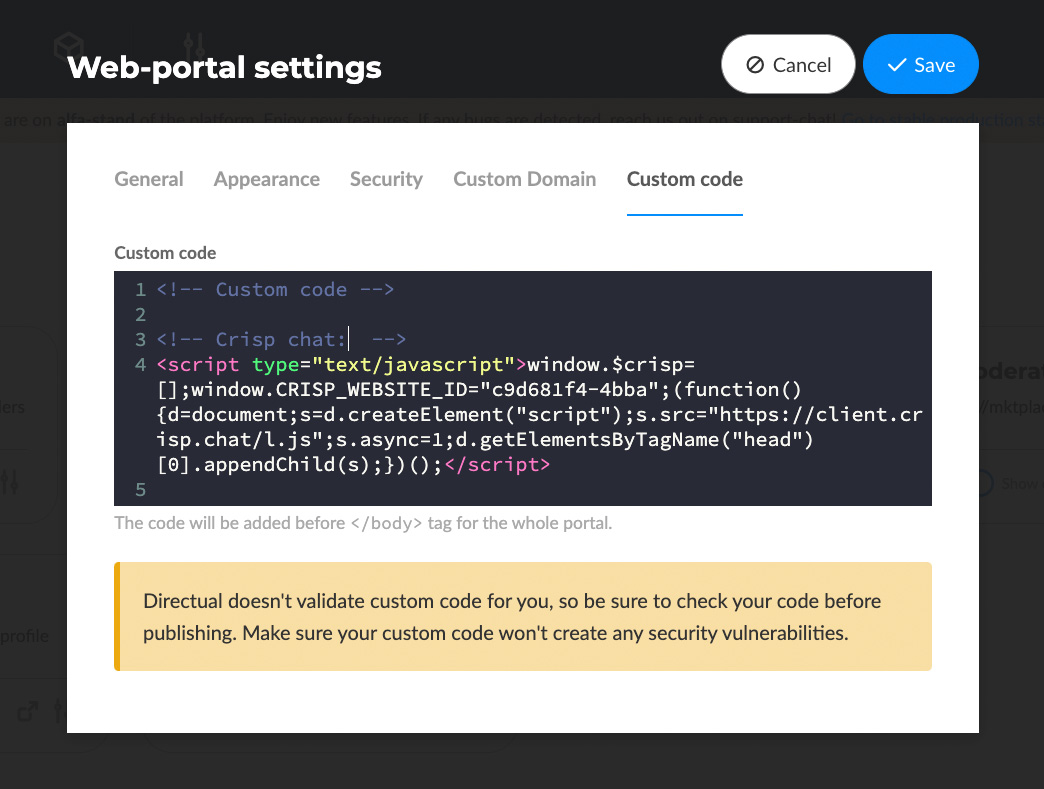 As much as we enjoy being a full-stack no-code app builder, sometimes you just must add your own touch to the whole thing. Thatâs why you can now add custom JS code on top of your project code. If hooking up metrics or support bots was a bit of a hassle before, not anymore.