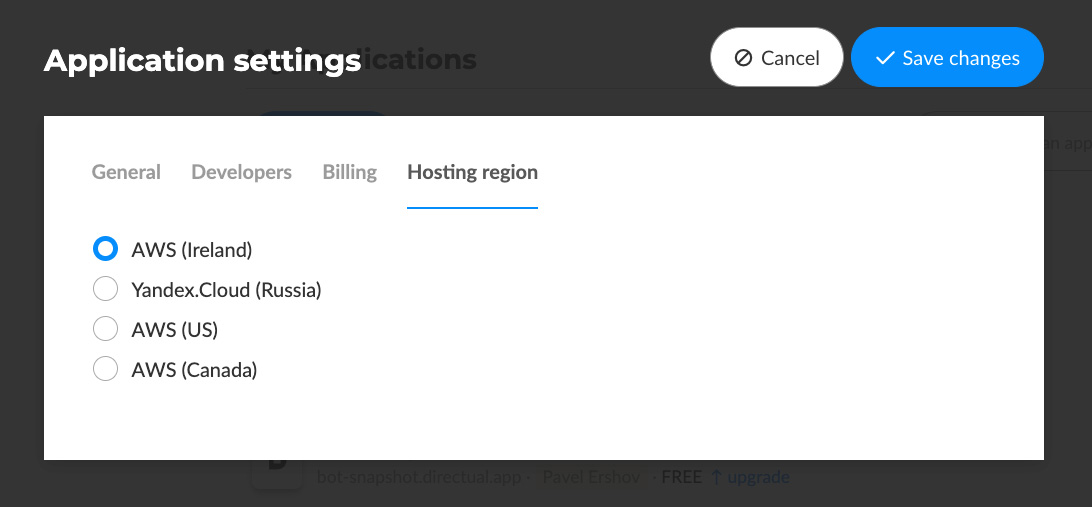 A simple thing, yet so many of you asked for it. Now you can decide where your app is hosted! Take your pick from AWS in Ireland, the US, Canada, or Yandex.Cloud in Russia.