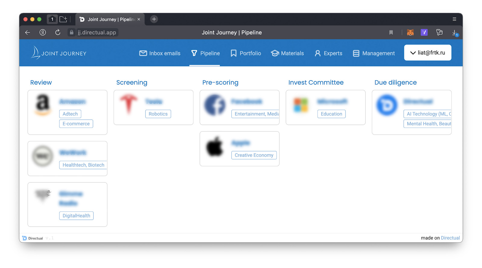 Long version: quite recently, we’ve released a very curious case of a venture capital management system/CRM built on Directual.