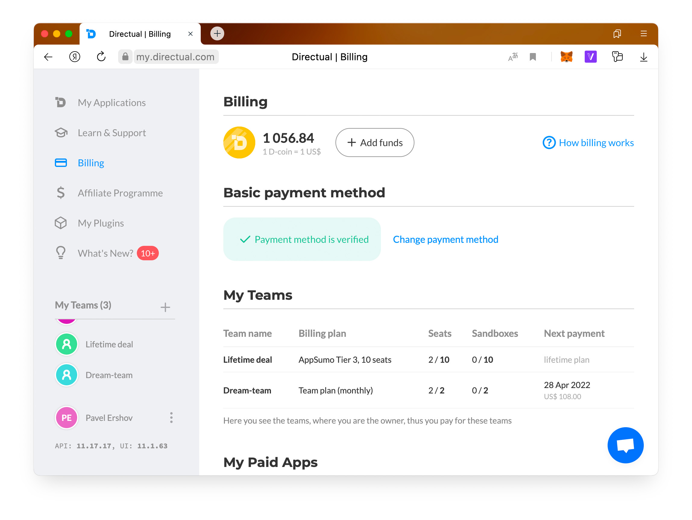 Sidenote: we built our billing and enabled d-coin exchange on Directual’s no-code functionality itself!